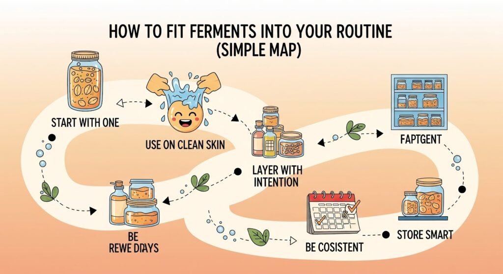 - Start with one – Pick a single fermented product to test (essence, toner, or a simple serum).