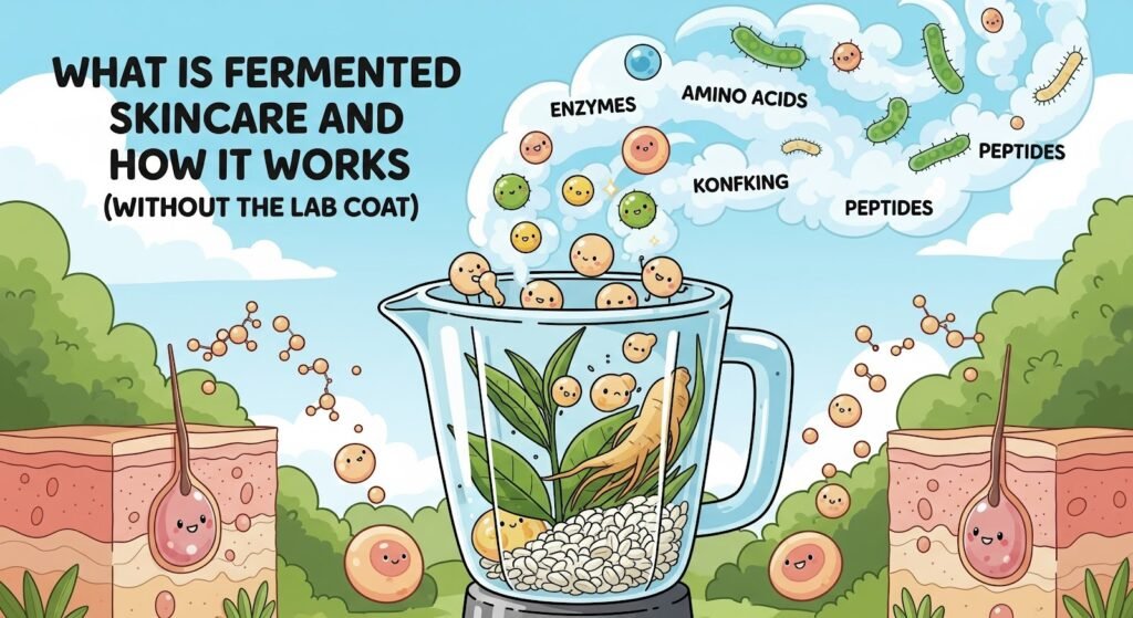 Think of skincare fermentation as nature’s mini blender. Microorganisms – usually yeast or good bacteria – nibble away at natural ingredients like green tea, ginseng, or rice bran. As they munch, they release helpful byproducts: enzymes, amino acids, peptides. The big, clunky molecules get broken into tiny ones your skin can drink up more easily. Less sitting on the surface. More “yep, I can use this.”